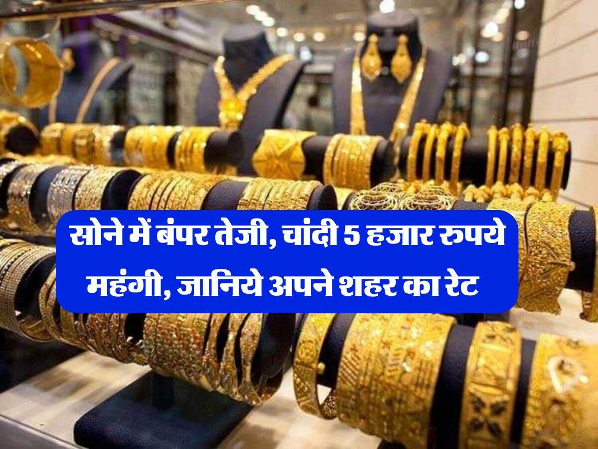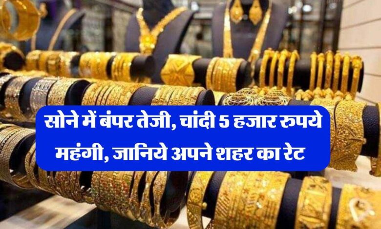 Sone Ka Rate : सोने में बंपर तेजी, चांदी 5 हजार रुपये महंगी, जानिये अपने शहर का रेट